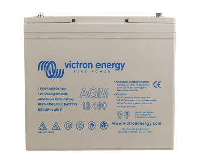 L’utilisation de matériaux de haute pureté et de grilles au plomb-calcium garantit que les batteries AGM présentent une autodécharge faible et qu’elles ne tomberont pas à plat même après de longues périodes sans être chargées. La gamme est fournie avec des bornes en cuivre plates perforées M8, ce qui garantit le meilleur contact possible. Ainsi, des bornes de batteries ne sont pas nécessaires. Les batteries sont conformes aux spécifications CE et UL concernant les conteneurs ininflammables ABS, et elles sont couvertes par la garantie mondiale de deux ans de Victron.