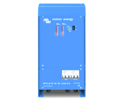 Les chargeurs GMDSS (Global Maritime Distress & Safety System – Système Global de Sécurité et Détresse Maritime) Skylla-TG 24/30 et 24/50 de Victron ont été conçus pour fournir tout le suivi et les données d’alarmes nécessaires. Aussi bien la batterie et le système GMDSS sont connectés directement au chargeur. Les données et les alarmes sont affichées sur un tableau numérique (tableau VE.Net GMDSS à commander séparément) Un câble standard UTP de 8 fils raccorde le chargeur au tableau.